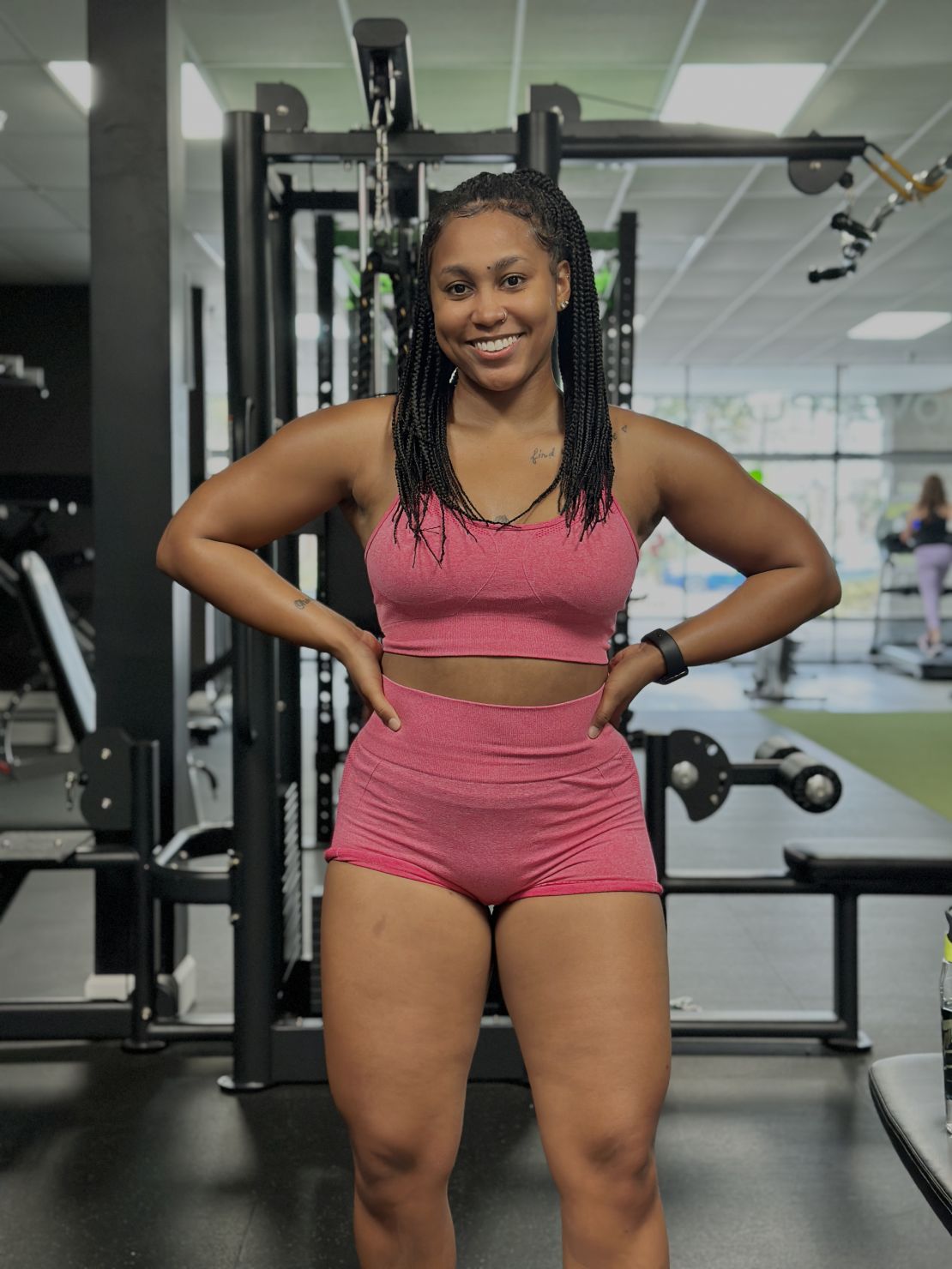 I grew up in a small town Lake View, SC where I spent my years doing Cheerleading, Volleyball, Basketball, Softball, and AAU. My senior year of college is where I fell in love with strength training. When I first started my fitness journey I was not confident AT ALL. I always wanted someone to come to the gym with me because I was timid about working out alone, I was ALWAYS & I mean ALWAYS covered up wearing HOODIES or a waist trainer bc I was afraid of being judged by others in the gym. However, once I began to challenge myself by letting go of my fears of what others were thinking of me. I became the most confident woman I have ever been. When I step foot into a gym, I look at myself as if I am the strongest woman in the world because in my eyes I AM! I am in no competition with no one but MYSELF. Being Confident, Fearless, Inspiring, and Tenacious is what I strive for each of you to obtain.